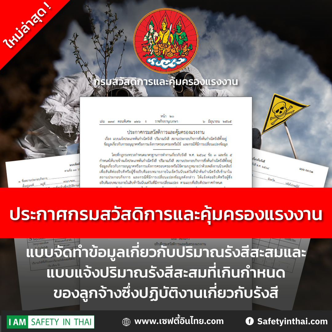 กสร.ประกาศ แบบจัดทำข้อมูลเกี่ยวกับปริมาณรังสีสะสมและ แบบแจ้งปริมาณรังสีสะสม