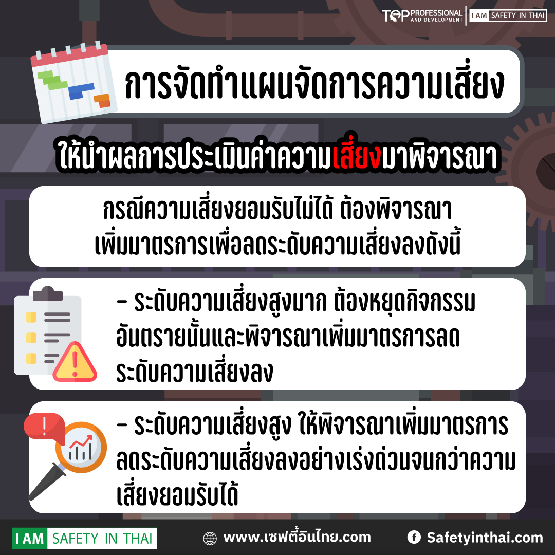 นายจ้างต้องจัดทำแผนจัดการความเสี่ยง ซึ่งประกอบด้วยแผนลดความเสี่ยง และแผนควบคุมความเสี่ยง