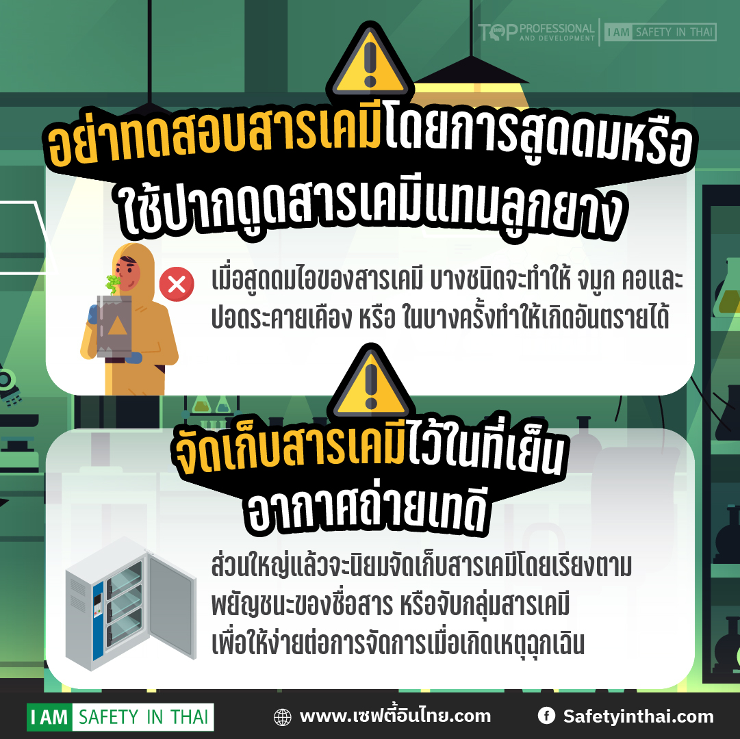 อย่าทดสอบสารเคมีโดยการสูดดมหรือใช้ปากดูดสารเคมีแทนลูกยาง