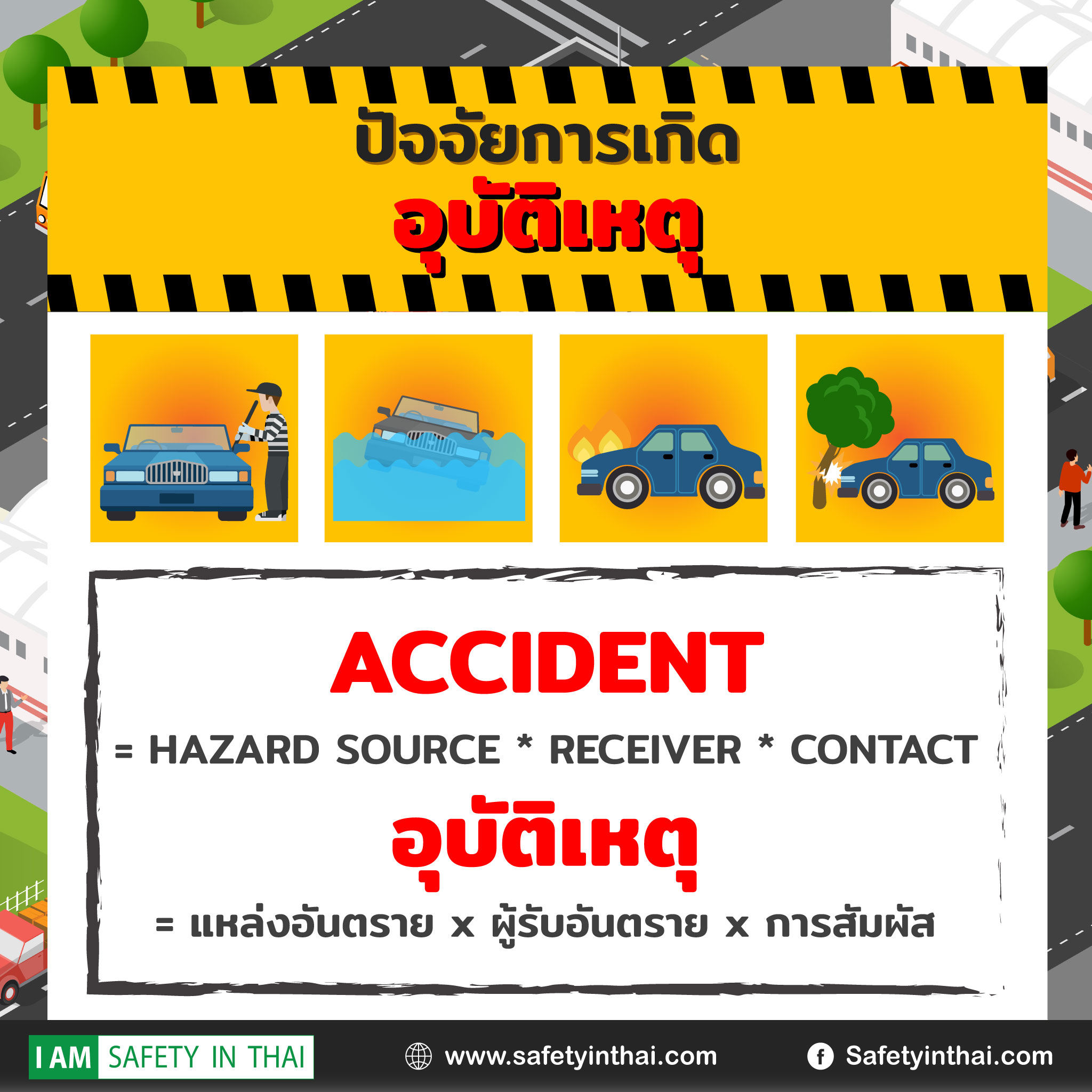 อุบัติเหตุ = แหล่งอันตราย x ผู้รับอันตราย x การสัมผัส