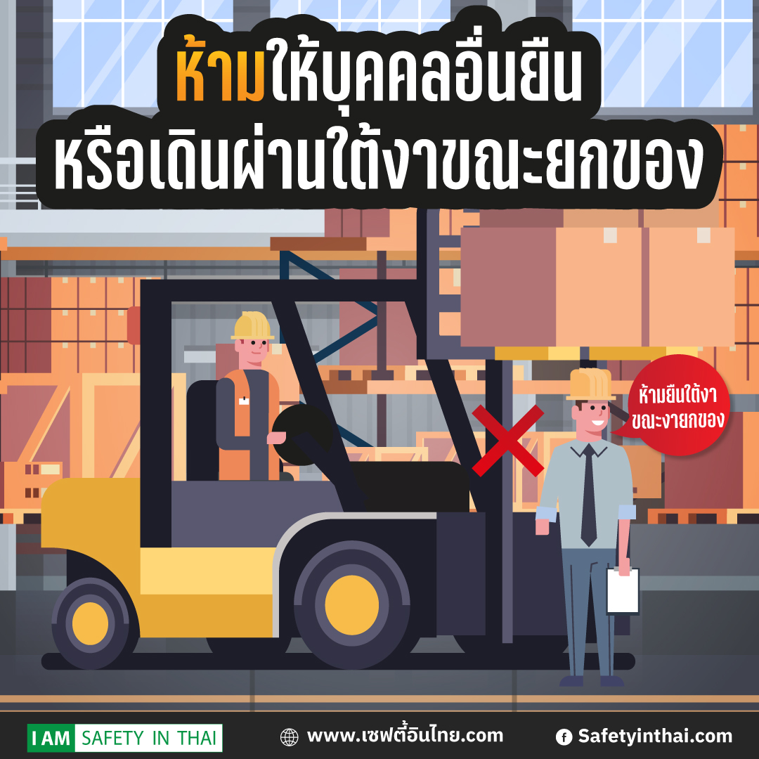 ห้ามให้บุคคลอื่นยืนหรือเดินผ่านใต้งาขณะยกของ