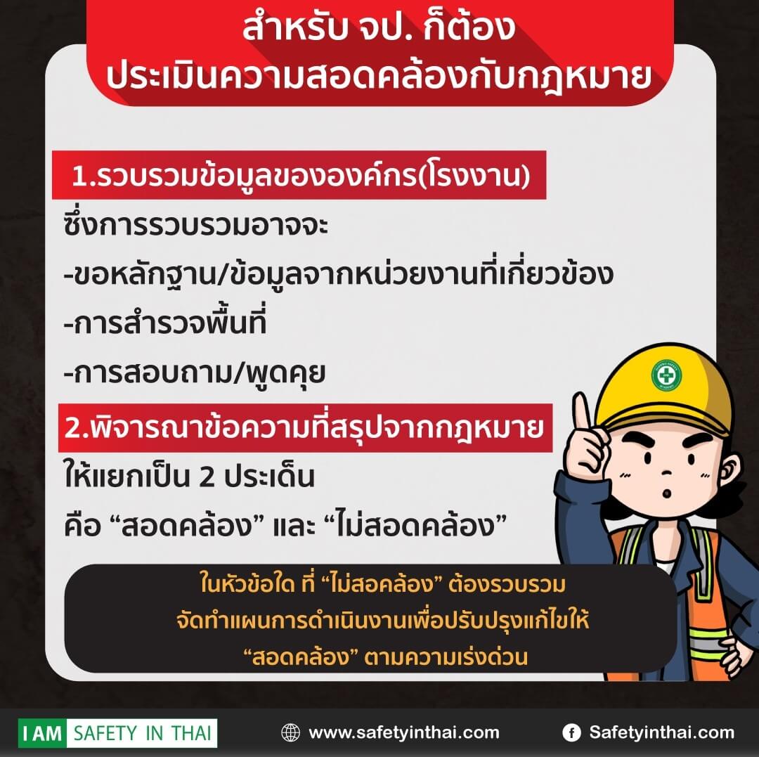 “ประเมินความสอดคล้องกับกฎหมายด้านความปลอดภัยฯ”ซึ่งมีขั้นตอน พอสังเขป ดังนี้