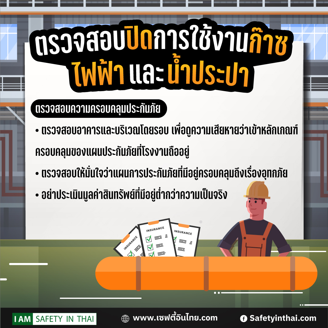• ตรวจสอบให้มั่นใจว่าแผนการประกันภัยที่มีอยู่ครอบคลุมถึงเรื่องอุทกภัย