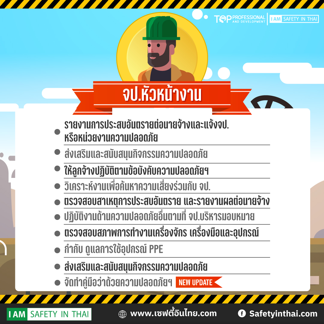 - ปฏิบัติงานถ้านความปลอดภัยอื่นตามที่นายจ้างบอบหมาย