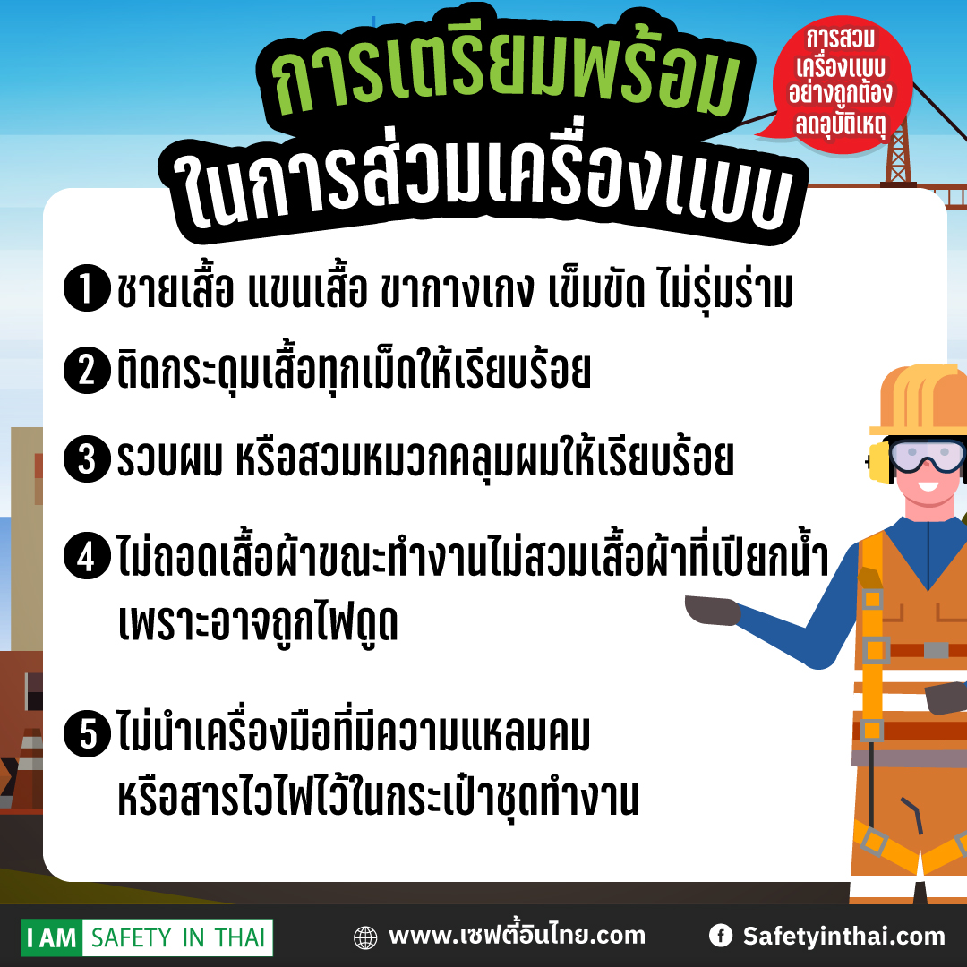 4 ไม่ถอดเสื้อผ้าขณะทำงานไม่สวมเสื้อผ้าที่เปียกน้ำเพราะอาจถูกไฟดูด