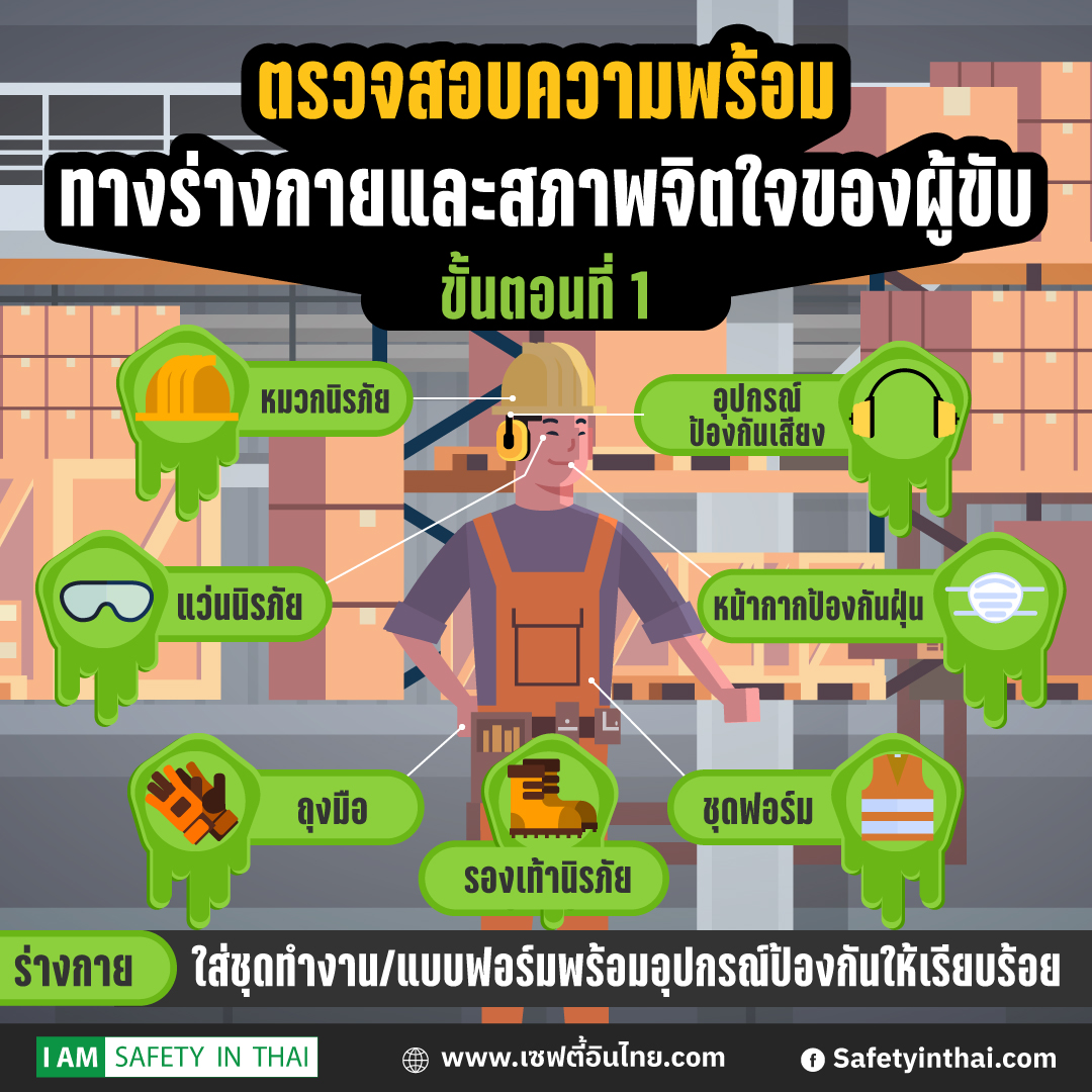 ร่างกาย : ใส่ชุดทำงาน/แบบฟอร์มพร้อมอุปกรณ์ป้องกันให้เรียบร้อย