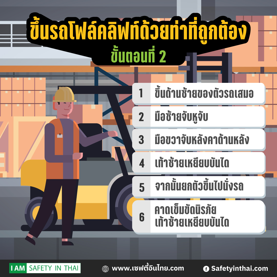 การขึ้นรถโฟล์คลิฟท์ต้องขึ้นท่าที่ถูกต้องเพื่อความปลอดภัยของผู้ขับ