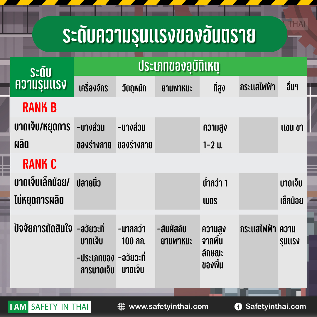 *ระดับความรุนเเรงของอันตรายสามารถดูได้ในตาราง
