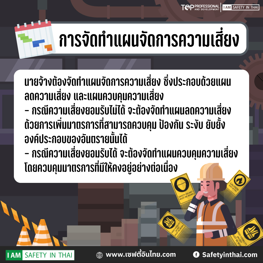 นายจ้างต้องจัดทำแผนจัดการความเสี่ยง ซึ่งประกอบด้วยแผนลดความเสี่ยง และแผนควบคุมความเสี่ยง