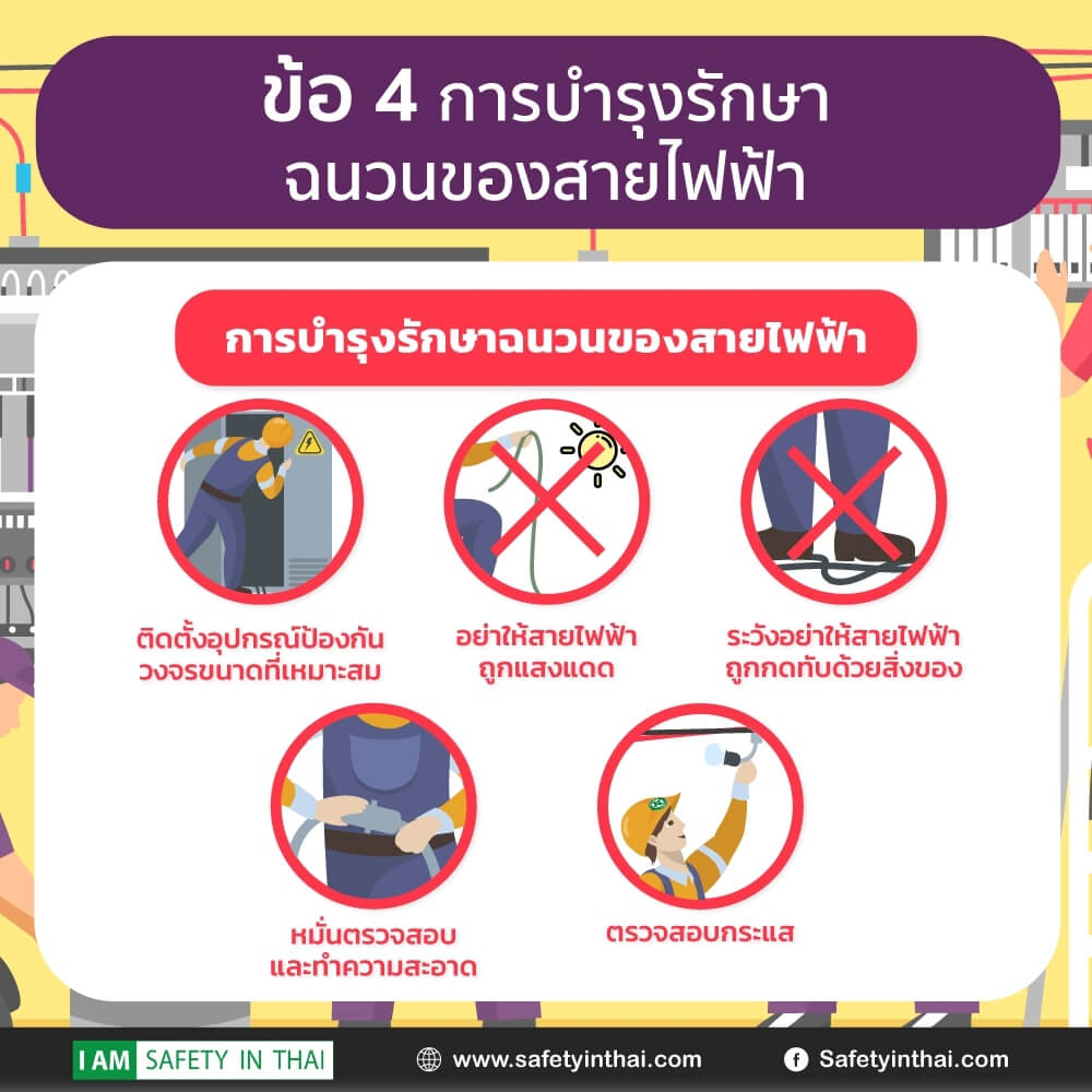 4. สายไฟฟ้าถูกกดทับความเสียหายของฉนวนที่เกิดจากการกดทับย่อมทำให้ลดอายุการใช้งานของสายไฟลดลง