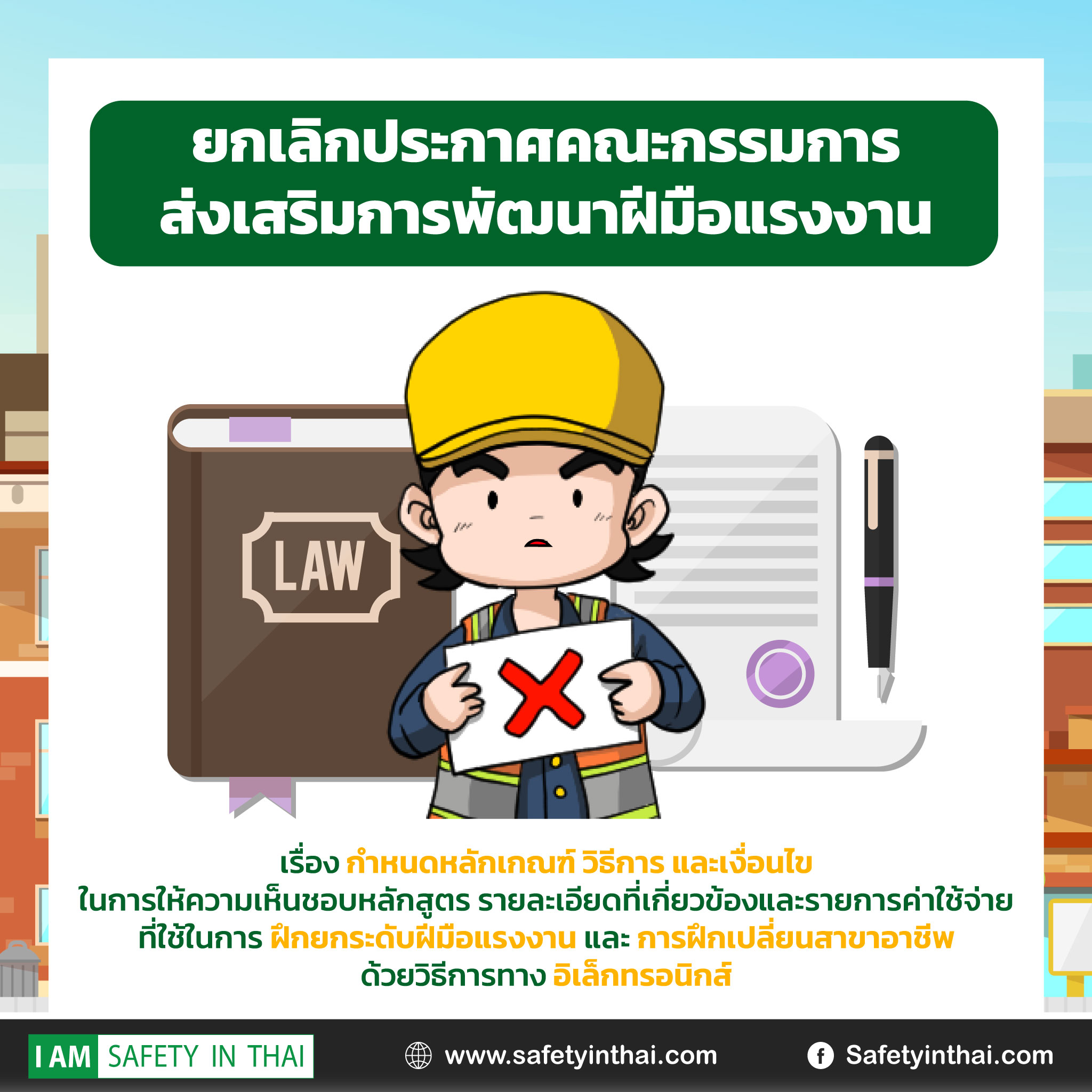 1. ยกเลิกประกาศคณะกรรมการส่งเสริมการพัฒนาฝีมือแรงงาน