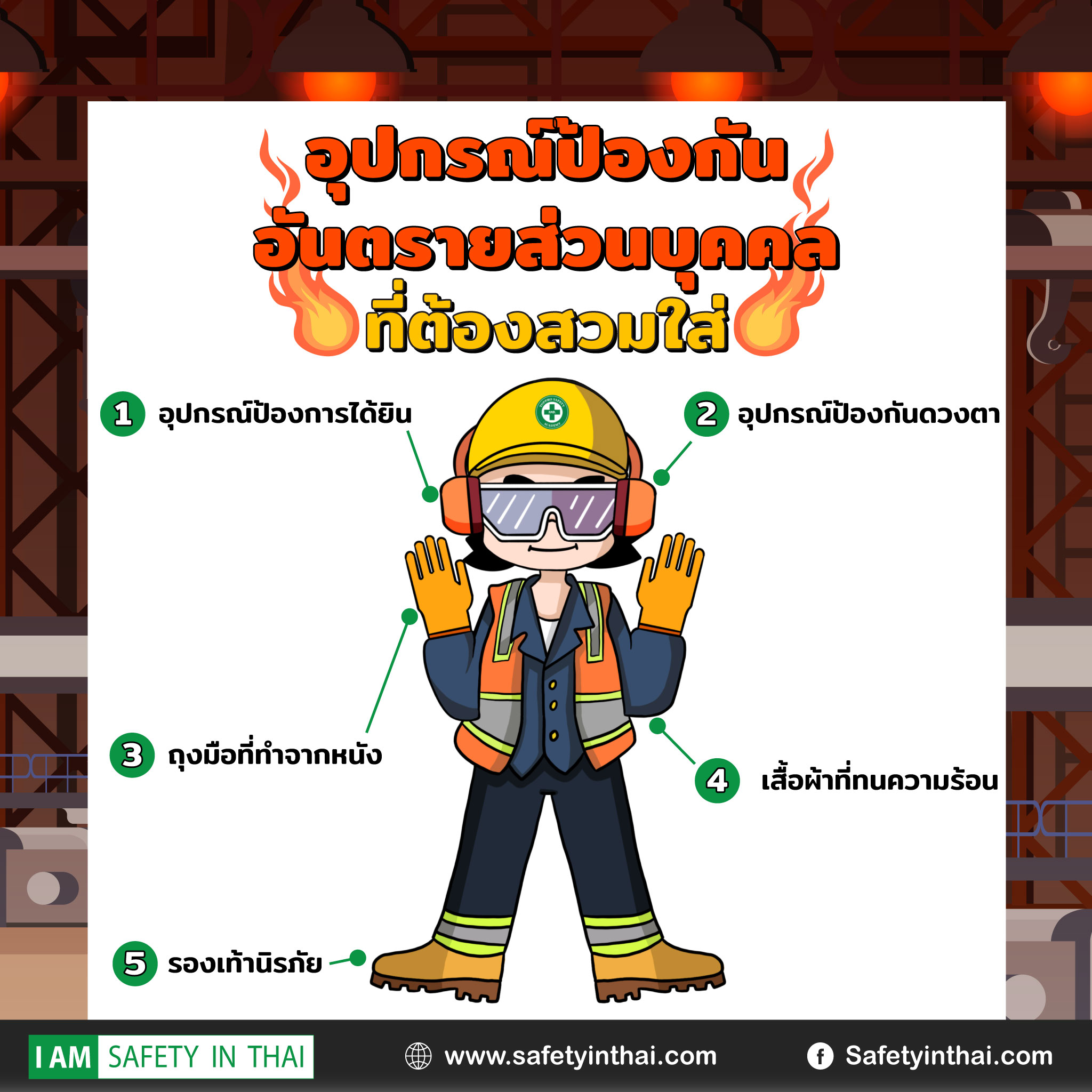 อุปกรณ์ป้องกันอันตรายส่วนบุคคลที่ต้องสวมใส่ ได้แก่