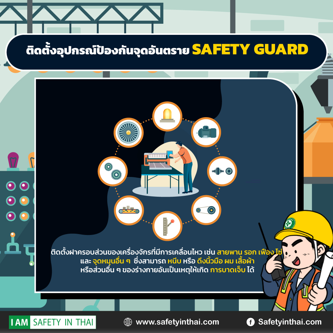 หรือผู้ที่เกี่ยวข้องจะไปสัมผัสหรือทำงาน แต่ด้านที่ไม่มีเซฟการ์ดมักทำให้ช่างซ่อมบำรุงได้รับอันตรายอยู่เสมอ นอกจากนี้เครื่องจักรบางเครื่องได้มีการติดตั้งเซฟการ์ดเรียบร้อยแต่ปรากฏว่ารูหรือช่องตะแกรงของเซฟการ์ดนั้นมีขนาดโตเกินไป ทำให้นิ้วหรืออวัยวะของร่างกายลอดผ่านเข้าไปได้