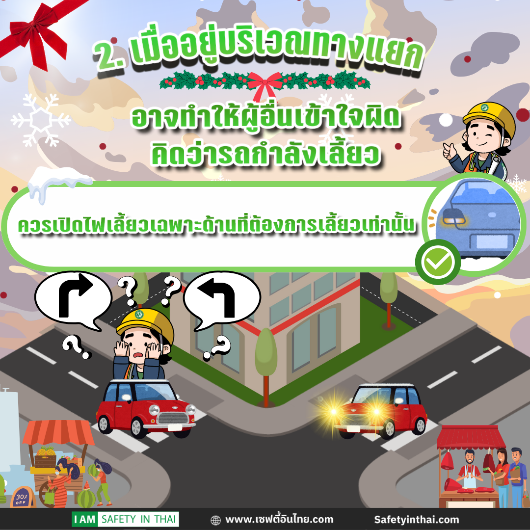 เมื่ออยู่บริเวณทางแยก อาจทำให้ผู้อื่นเข้าใจผิดได้ ว่ารถกำลังจะเลี้ยว ดังนั้นควรเปิดไฟเลี้ยวเฉพาะด้านที่ต้องการเลี้ยวเท่านั้น