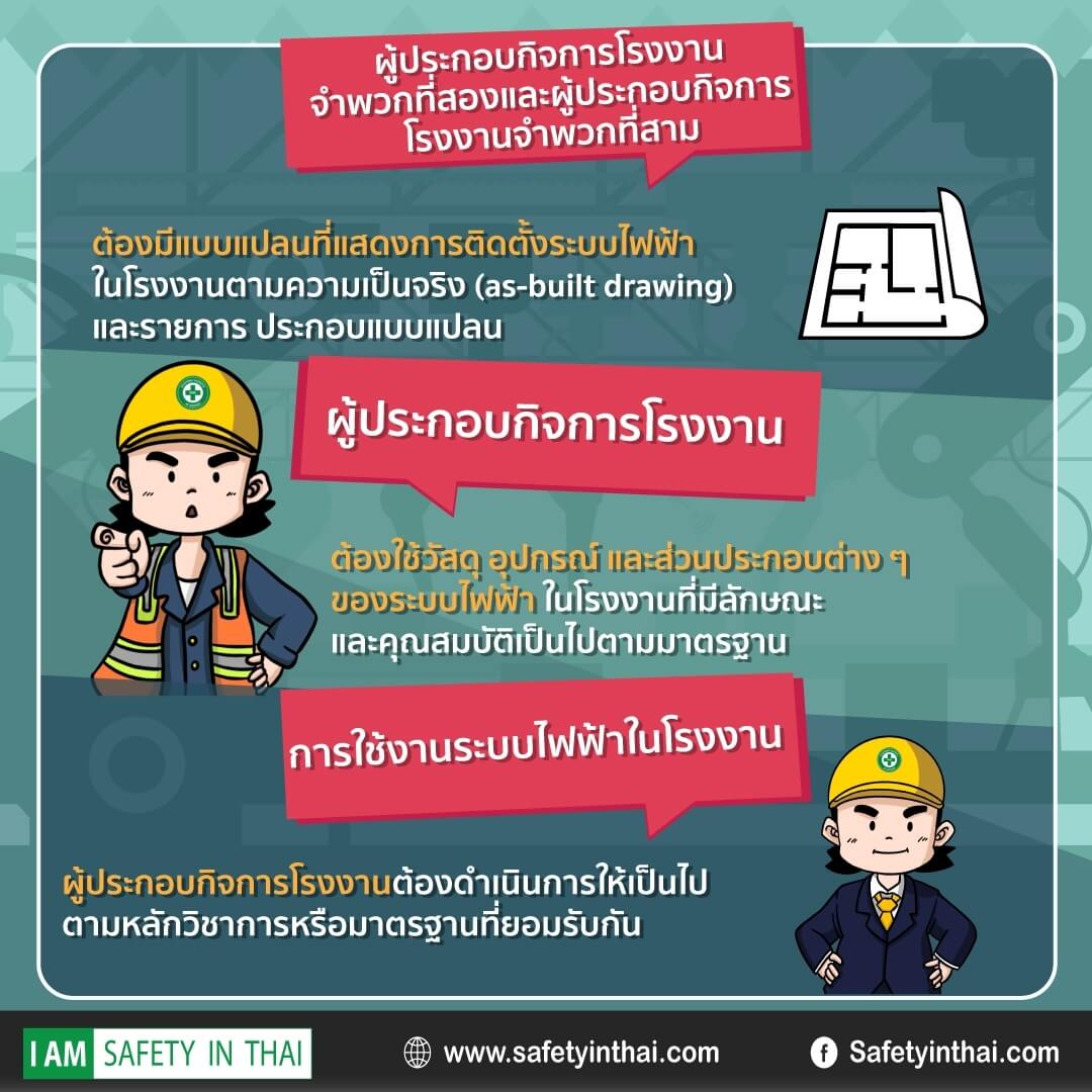 ข้อ ๔ การใช้งานระบบไฟฟ้าในโรงงาน ผู้ประกอบกิจการโรงงานต้องดำเนินการให้เป็นไป ตามหลักวิชาการหรือมาตรฐานที่ยอมรับกัน หรือตามหลักเกณฑ์ วิธีการ และเงื่อนไขที่รัฐมนตรีกำหนด โดยประกาศในราชกิจจานุเบกษา