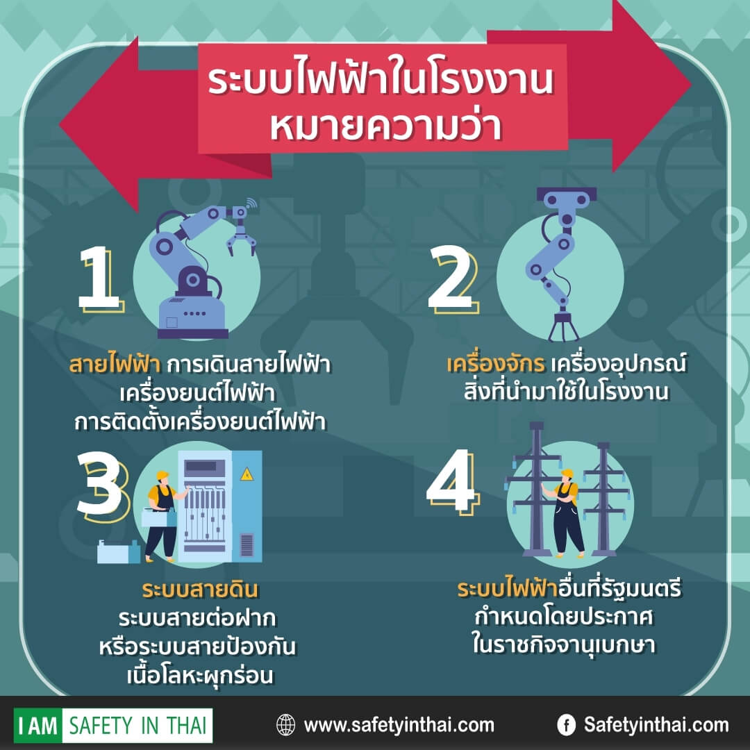 ข้อ ๑ ในกฎกระทรวงนี้ “ระบบไฟฟ้าในโรงงาน” หมายความว่า