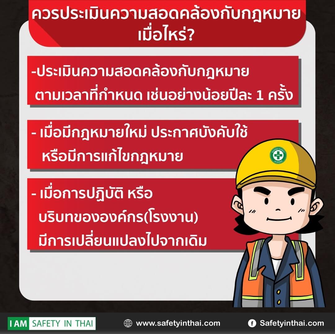 ๑. “ทบทวนประเมินความสอดคล้องกับกฎหมาย” ตามเวลาที่กำหนด เช่นอย่างน้อยปีละ ๑ ครั้ง