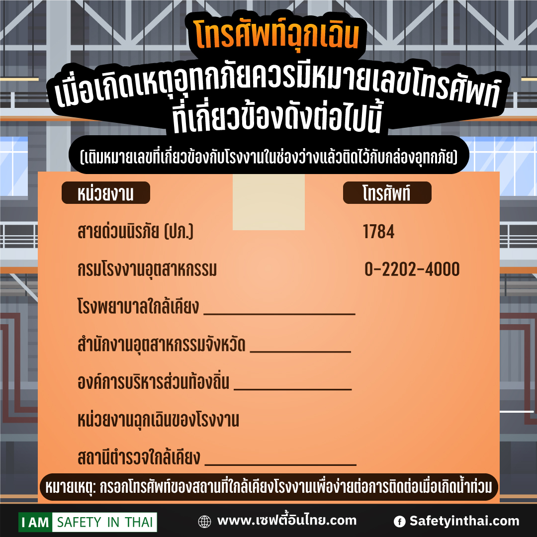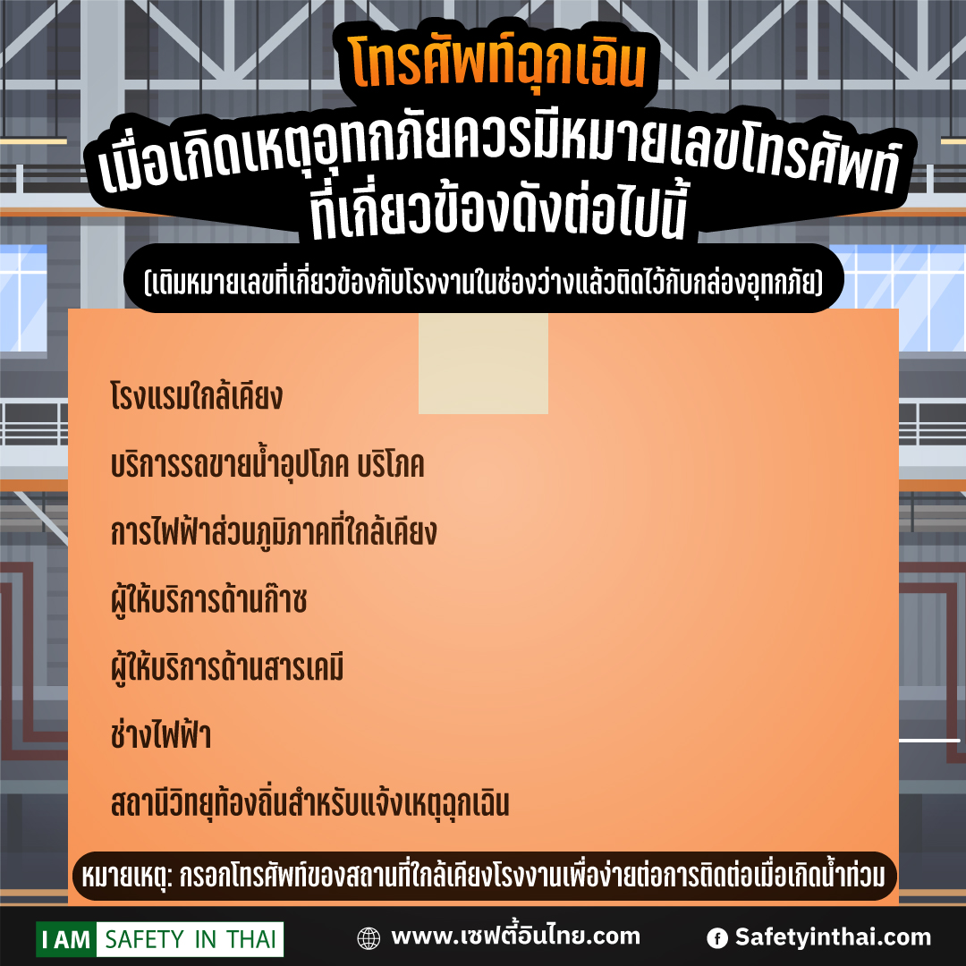เมื่อเกิดเหตุอุทกภัยควรมีหมายเลขโทรศัพท์ที่เกี่ยวข้องดังต่อไปนี้
