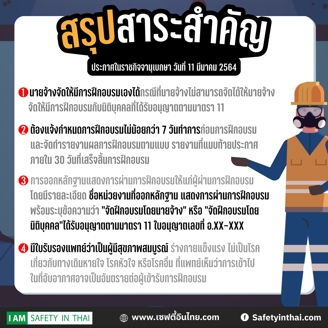 สรุปสาระสำคัญหลักเกณฑ์วิธีการและหลักสูตรการฝึกอบรมในการทำงานในที่อับอากาศ