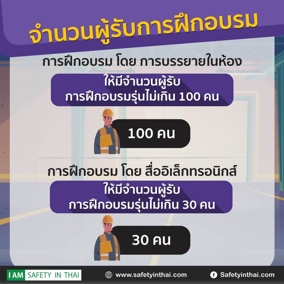 กรณีการฝึกอบรมโดยการบรรยาย สำหรับการฝึกอบรมในห้องฝึกอบรม ให้มีจำนวนผู้รับการฝึกอบรมรุ่นละไม่เกินหนึ่งร้อยคน สำหรับการฝึกอบรมทางกลผ่านสื่ออิเล็กทรอนิกส์ ให้มีจำนวนผู้รับการฝึกอบรมรุ่นละไม่เกินสามสิบคน