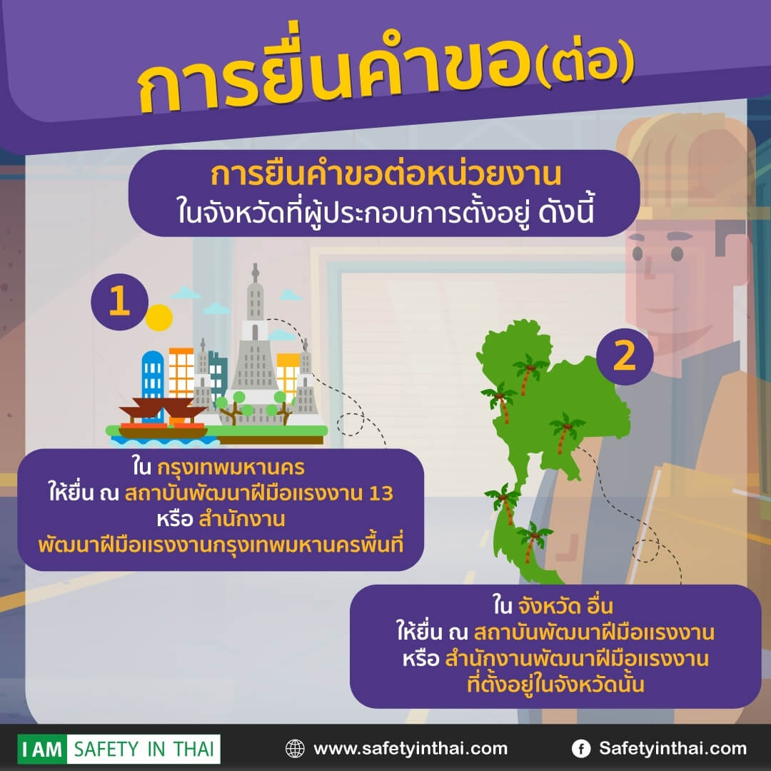 (๒) ในจังหวัดอื่น ให้ยื่น ณ สถาบันพัฒนาฝีมือแรงงานหรือสำนักงานพัฒนาฝีมือแรงงานที่ตั้งอยู่ในจังหวัดนั้น"