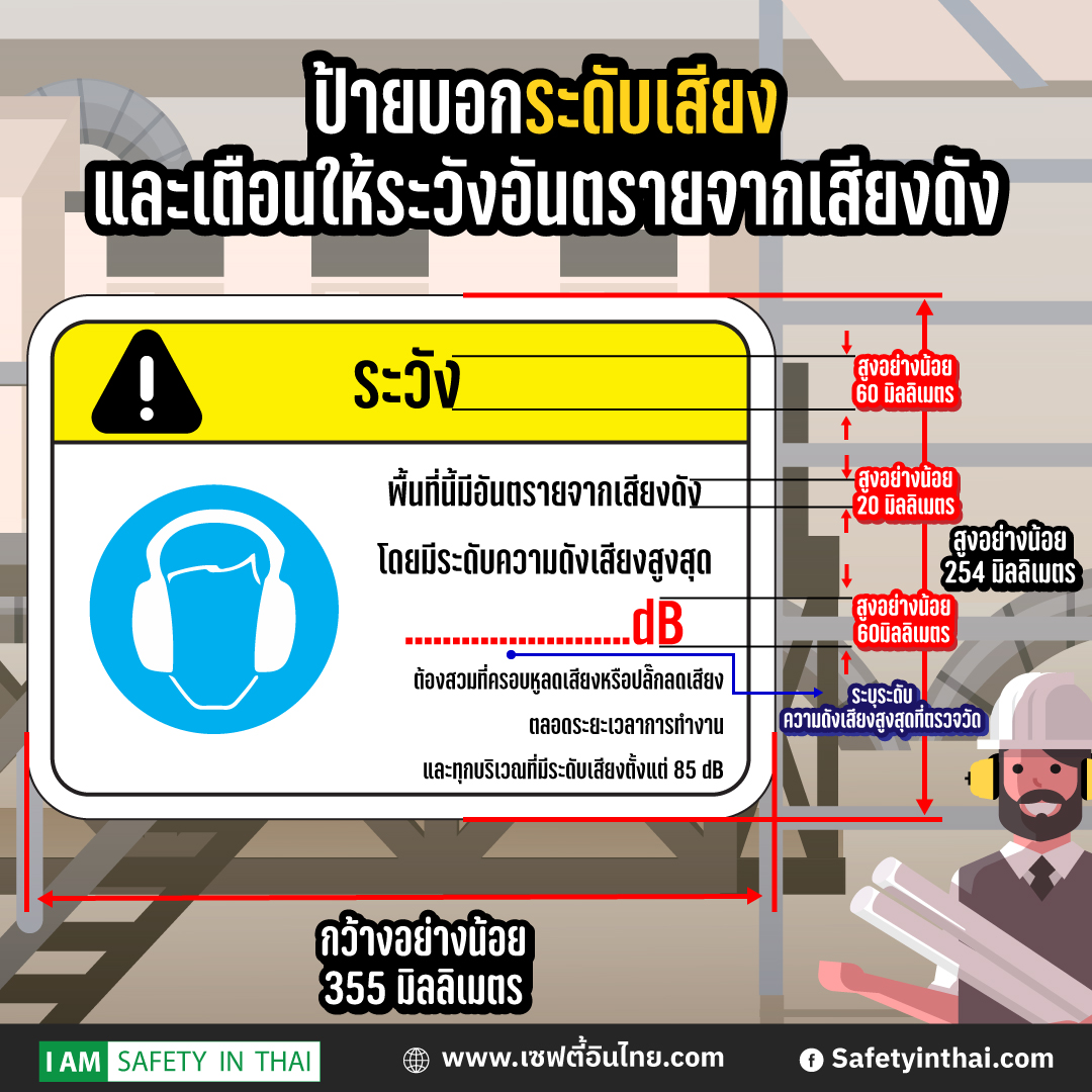 - อันตรายจากเสียงดัง ระบุชัดเจนว่าพื้นที่นี้มีเสียงดัง