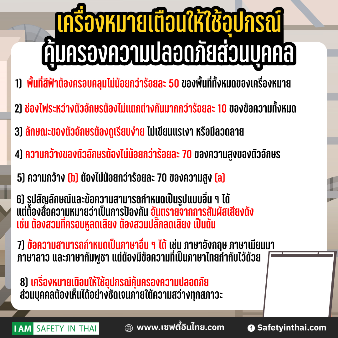 8) เครื่องหมายเตือนให้ใช้อุปกรณ์คุ้มครองความปลอดภัยส่วนบุคคลต้องเห็นได้อย่างชัดเจน
