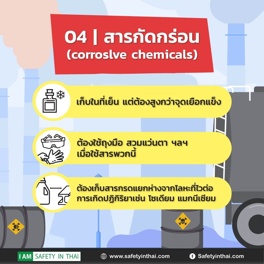 - ต้องใช้ถุงมือ สวมแว่นตา ฯลฯ เมื่อใช้สารพวกนี้
