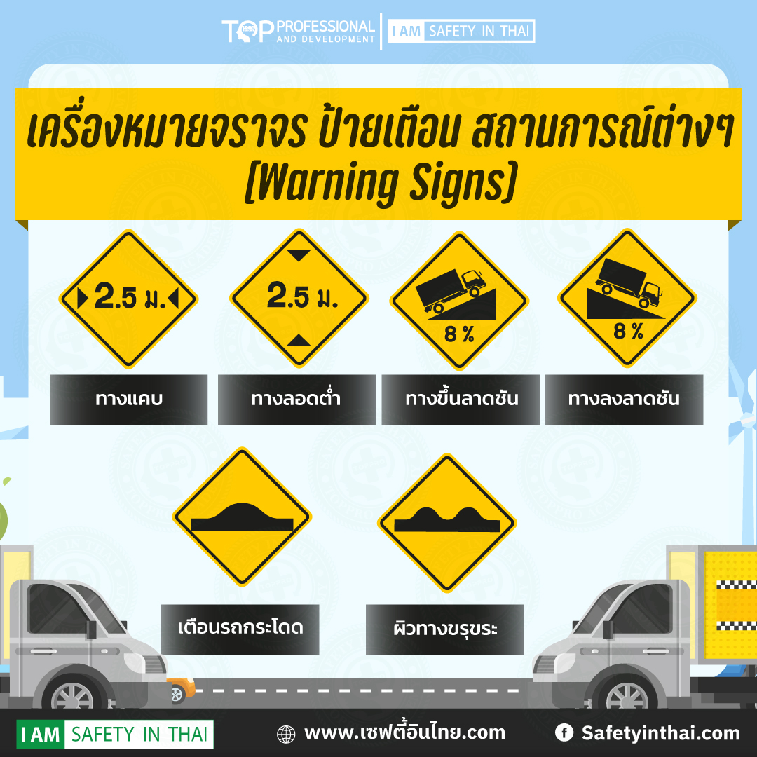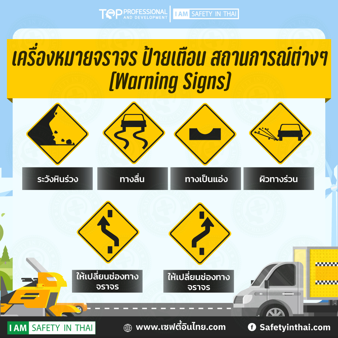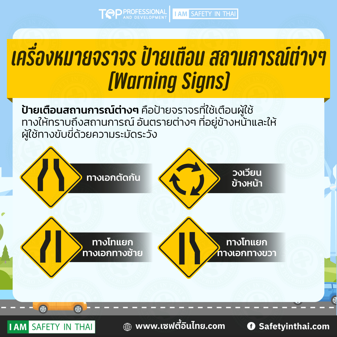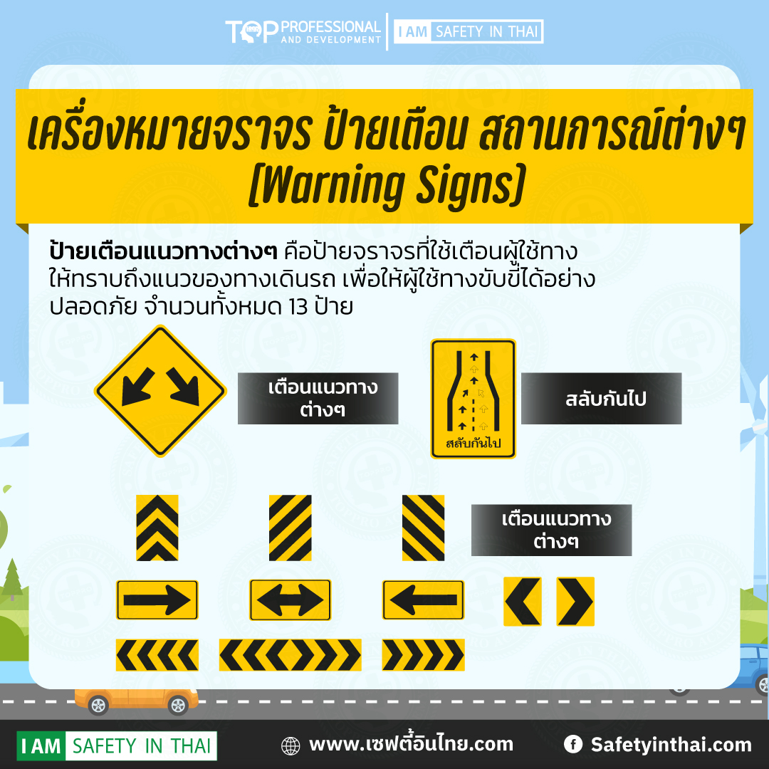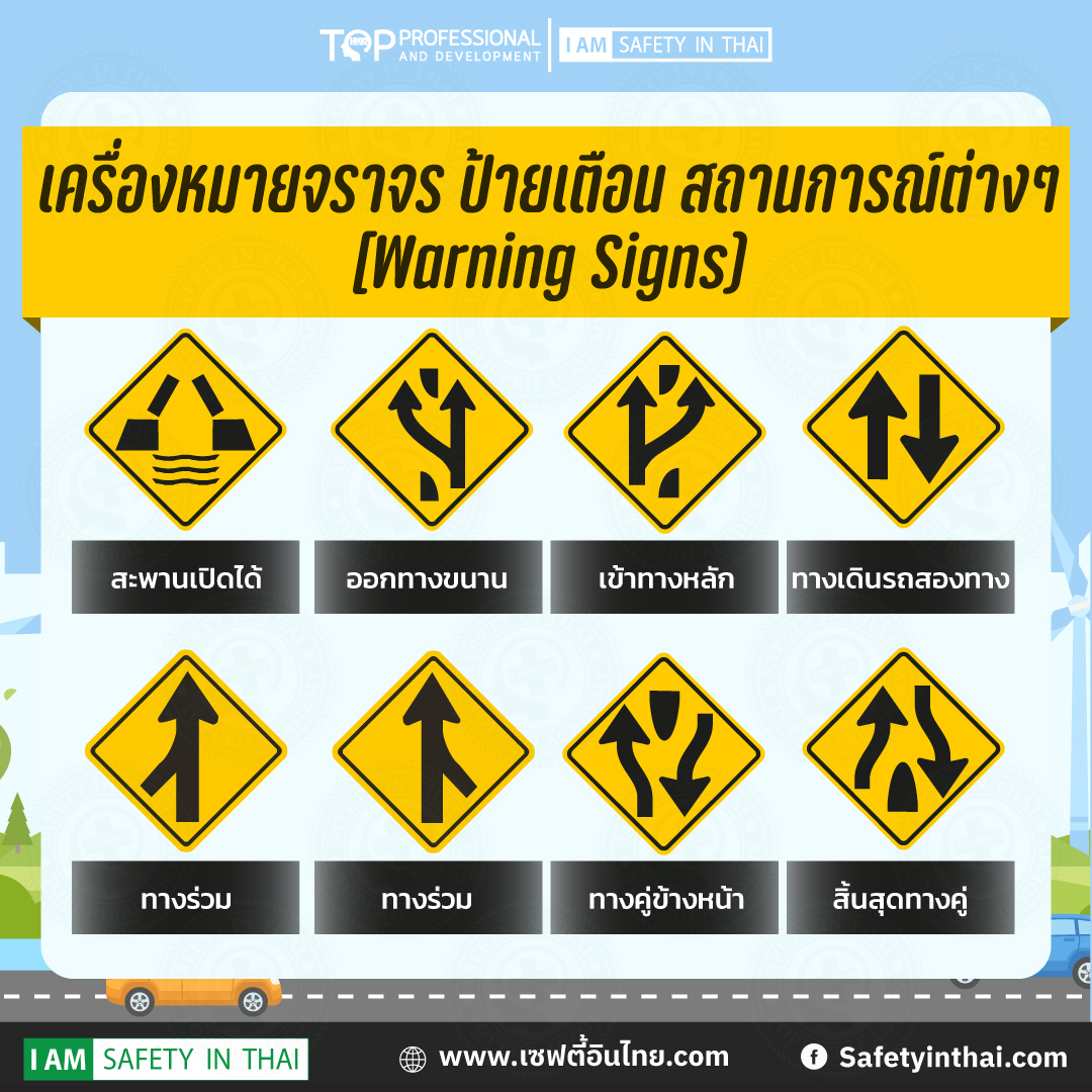 เครื่องหมายจราจร เป็นสิ่งที่หลายคนคุ้นเคยและพบเห็นบนท้องถนนกันอย่างแน่นอน เครื่องหมายป้ายเตือน และความหมายของเครื่องหมายจราจรทั้งหมด เป็นสิ่งบ่งบอกความสำคัญของป้ายเพื่อเป็นแนวทางในการปฏิบัติอย่างถูกต้อง และขับขี่อย่างปลอดภัย ซึ่งอาจจะมีบางป้ายที่หลายคนยังไม่คุ้นเคยมากเท่าไหร่ ในวันนี้ทาง Safety in thai จึงขอนำทุกคนไปรู้จักกับ ป้ายเตือน และเครื่องหมายจราจรที่ควรรู้กันให้มากขึ้น พร้อมกับความสำคัญและเครื่องหมายของป้ายจราจรต่าง ๆ ในเมืองไทย